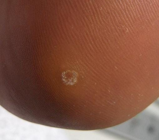 - Heeft u een wat drogere huid dan doet deze infectie zich vaak voor in de vorm van jeukende blaasjes, die dikwijls vervellen. Vooral zichtbaar op de voetzolen. De blaasjes kunnen in een later stadium indrogen tot bruine vlekjes of korstjes, waarna de huid vaak wat afschilfert. In uitzonderlijke gevallen kunnen er grotere blaren ontstaan waaruit vocht komt.